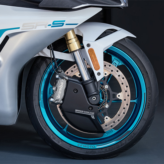 The Brembo M40 front caliper on the 450SR S always delivers robust and controlled braking power. Supported by an updated BOSCH Antilock Brake System (ABS) to prevent wheel lock during emergency braking and paired with an upgraded Φ240mm single disc rear brake with dual-piston caliper ensuring optimal stopping power.